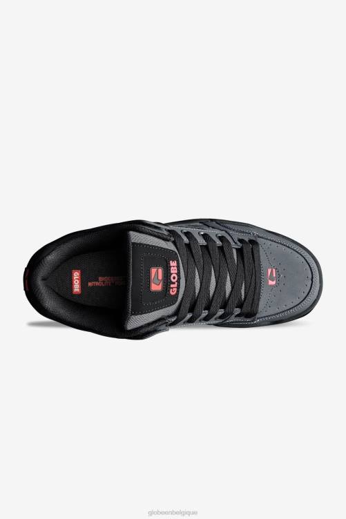 la silhouette de skate classique du patrimoine de Globe. l'inclinaison en noir/gris/rouge est dotée d'un col extérieur moulé en TPR pour plus de soutien et de durabilité et d'une semelle stroboscopique globe avec motif de semelle S-trac pour une meilleure adhérence et une meilleure sensation de planche. la tige est construite à partir d'action, de nubuck synthétique et de TPR.