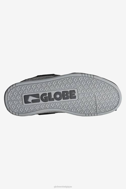 La Globe Fusion en noir/gris pointillé est une chaussure de skate robuste et entièrement rembourrée avec une doublure de chaussette à enfiler. avec renfort ollie, motif de semelle Globe's S-Trac et stabilisateur de talon.
