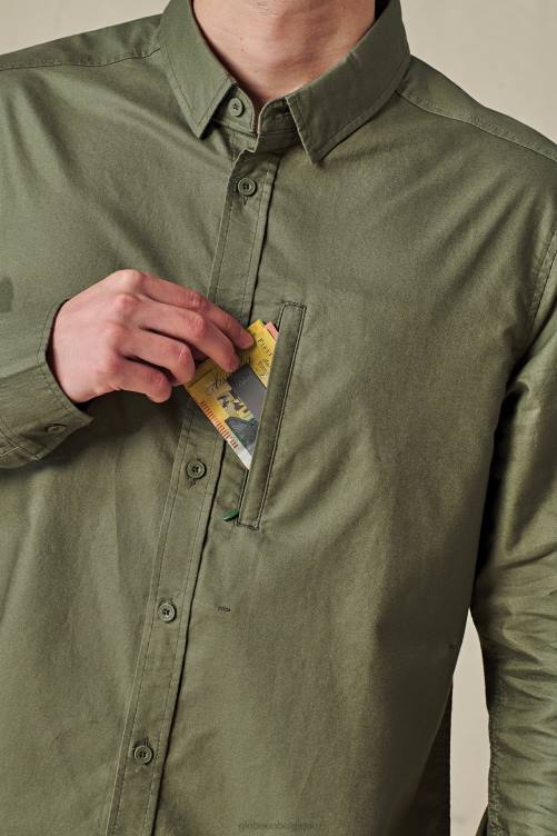 Confortable, durable et respectueuse de l'environnement, fabriquée en coton biologique, cette chemise à manches longues est dotée d'une poche zippée dissimulée sur la poitrine, d'un col boutonné et d'un revêtement résistant à l'eau durable sans Pfoa.