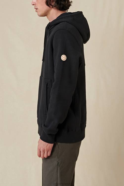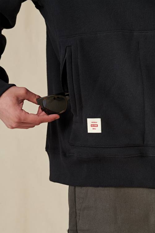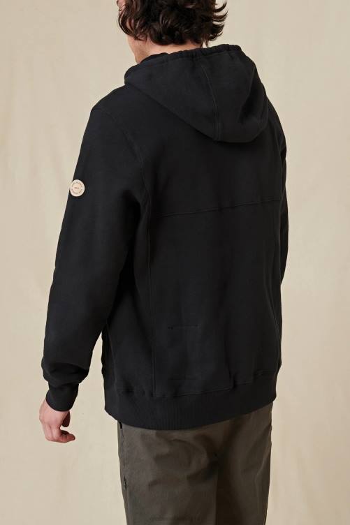 confortable, durable et respectueux de l'environnement, fabriqué à partir de coton 100 % biologique, le sweat à capuche robuste en noir est une polaire à capuche de coupe régulière avec une poche kangourou avec des fermetures éclair dissimulées, des panneaux latéraux côtelés et côtes en élasthanne pour plus de confort.